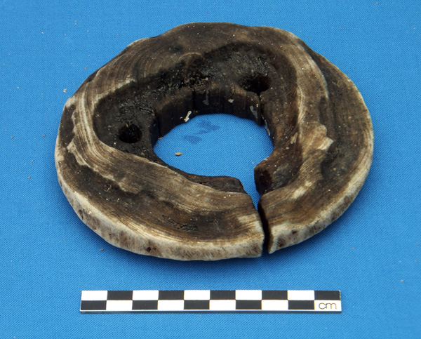 The sheave would originally have been mounted within a large pulley block and would have been used as part of the rigging on the vessel. Blocks were also used for gun tackle but the block that this sheave came from is probably too large for that purpose.
