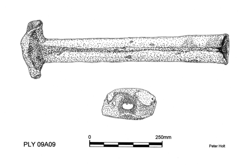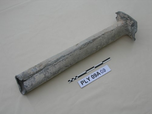 This scupper was one of four found on the inshore Coronation site off Penlee Point. A scupper was a round, lead-lined channel used to take water off the deck and over the side of the ship.