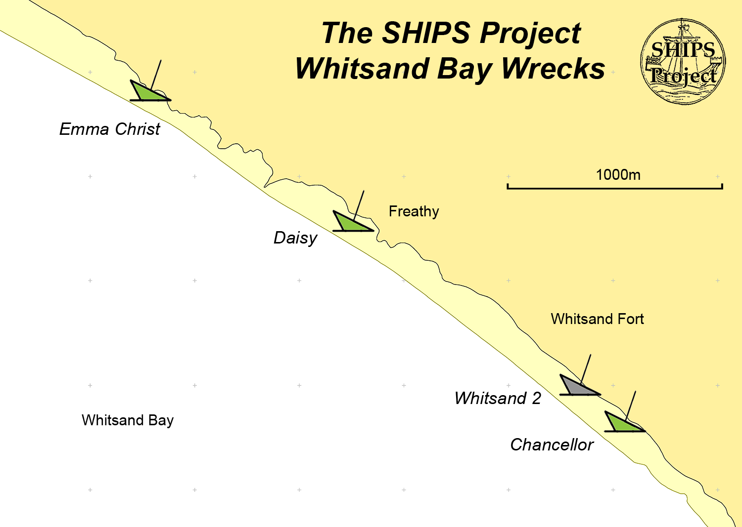 The exposed coast of Whitsand Bay is not a suitable location to abandon a boat but we have included four shipwrecks that can occasionally be seen on the beach.