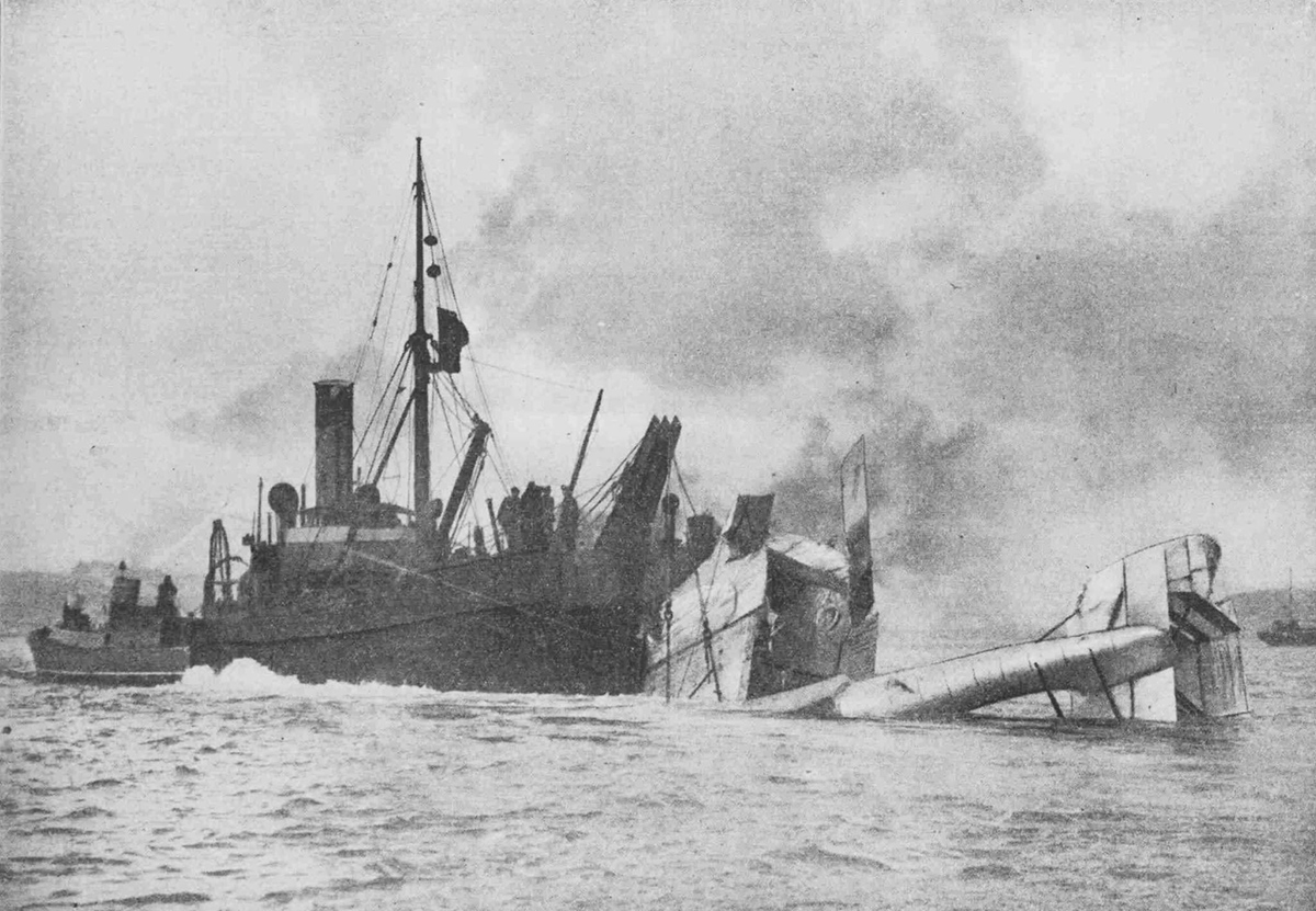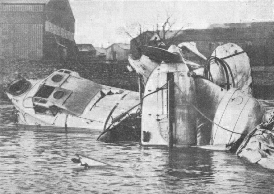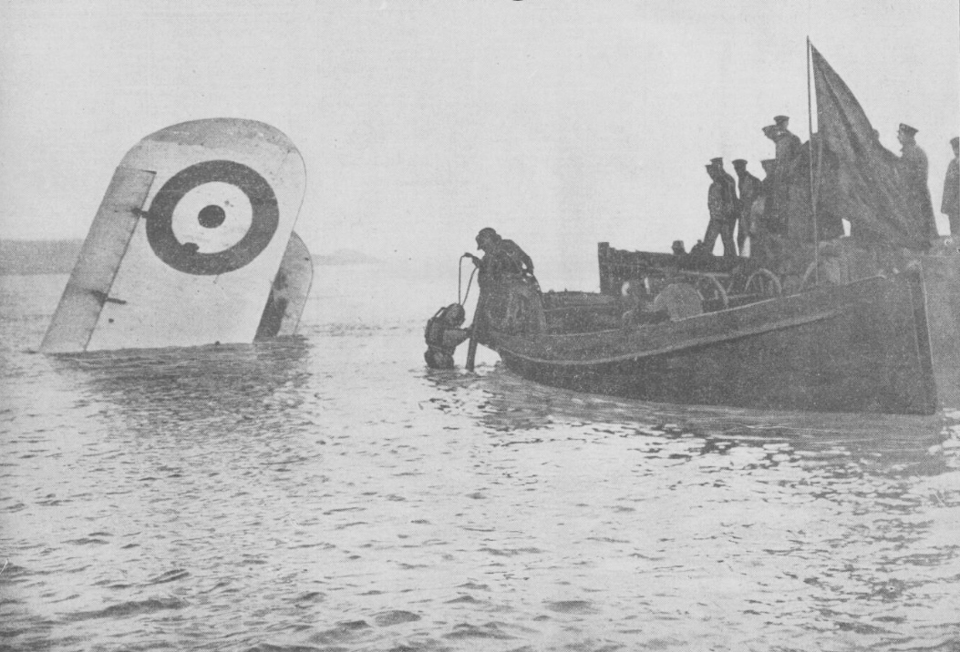Mooring steamer Volens came out to the scene that afternoon to find just one wing tip above the water, divers were sent down to assess the extent of the damage.
