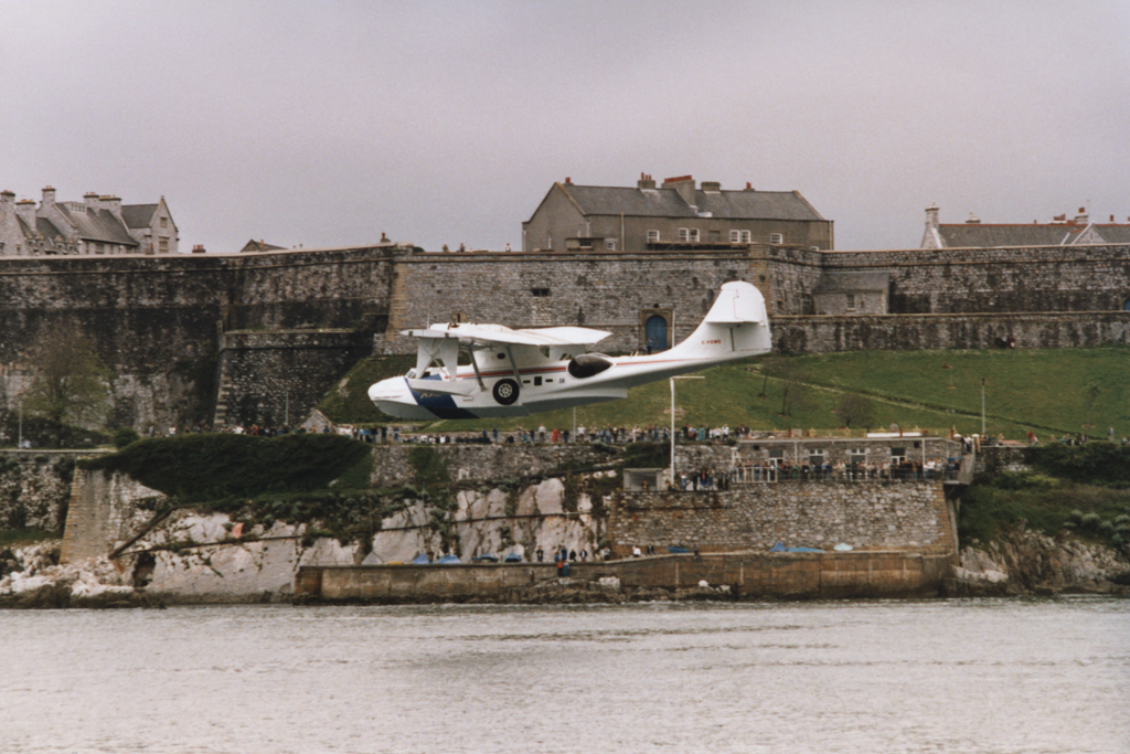 The Consolidated PBY-5A Catalina seaplane built in 1944 was taking part to an airshow off Plymouth on 31 May 1986, the second of two Catalinas to arrive from the US in celebration of the first transatlantic flight by flying boat in 1919 and the 75th anniversary of US Naval aviation. A landing strip had been marked out in Plymouth Sound however the Catalina landed about 460m short. The starboard wingtip float struck an inflatable buoy then the left wing struck a channel marker buoy, ripping off the port wingtip float and 3m of the port wing. The aircraft lurched heavily and landed on its port side, and came to rest slowly filling with water. The crew of the plane were quickly taken off by rescue craft and the aircraft sank in shallow water. There were no injuries among the seven occupants but the aircraft was salvaged, repaired at RAF Mount Batten and returned to the USA later the same year.