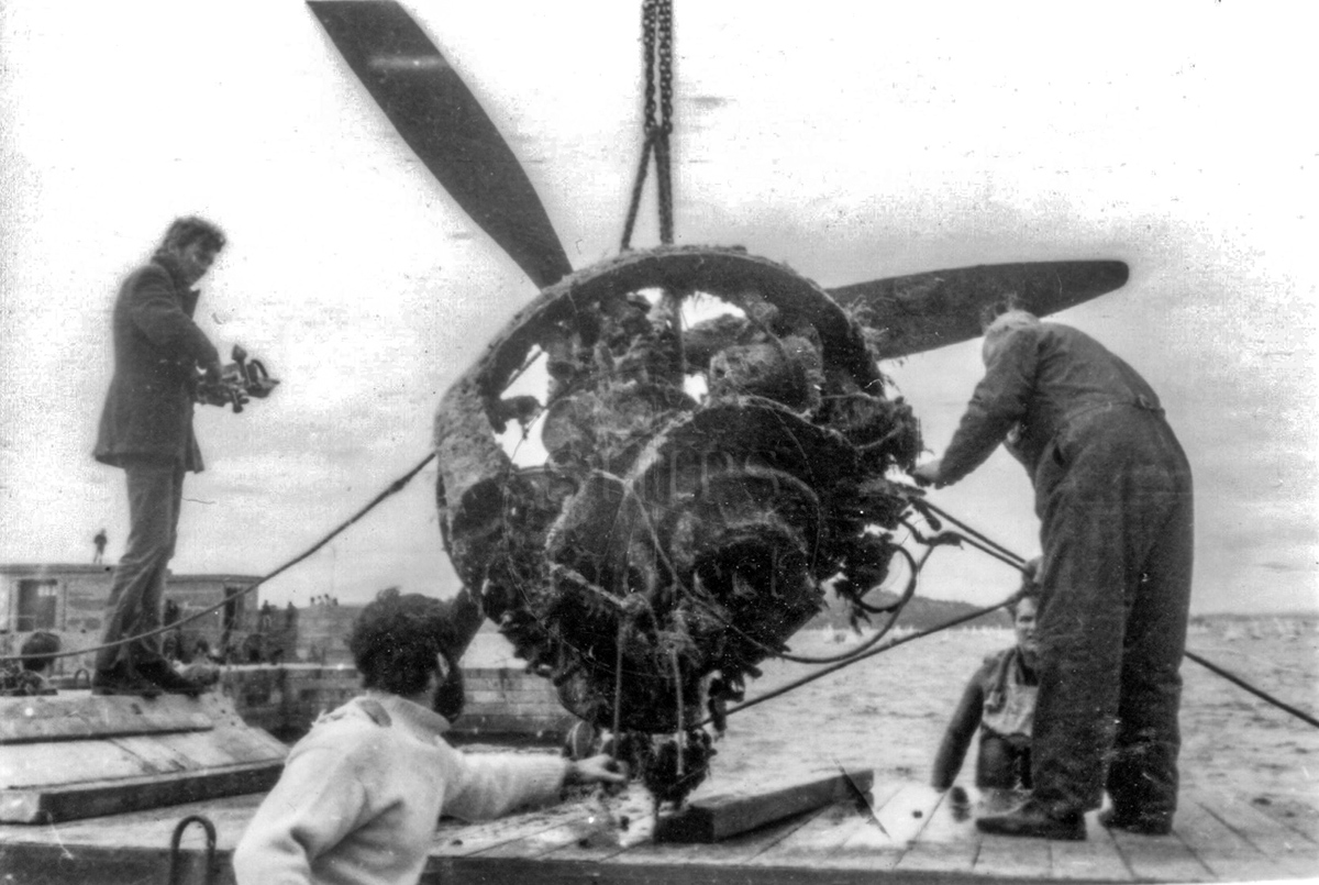 The remains of this aircraft are scattered over Panther Shoal, to the south of the west end of Plymouth breakwater. Three engines were recovered, and one still remains on the east side of the shoal in 12m depth, propped up on the rocks.