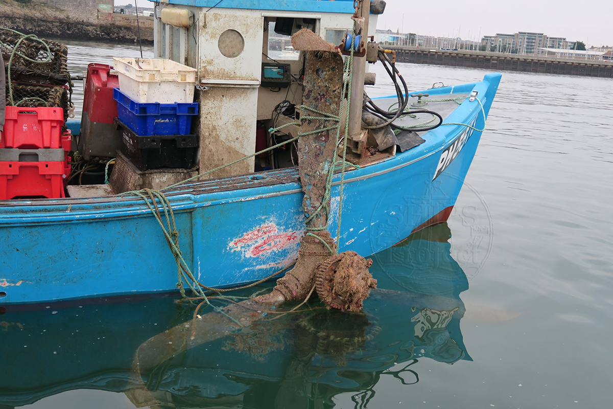 A three bladed aircraft propeller and gear unit were recovered off the West end of the Breakwater. Fisherman David Cross snagged the propeller on 5th January 2018 while picking up crab pots. The propeller was put on shore in Sutton Harbour and The SHIPS Project were notified, so we came down and photographed the propeller just after it had been recovered.