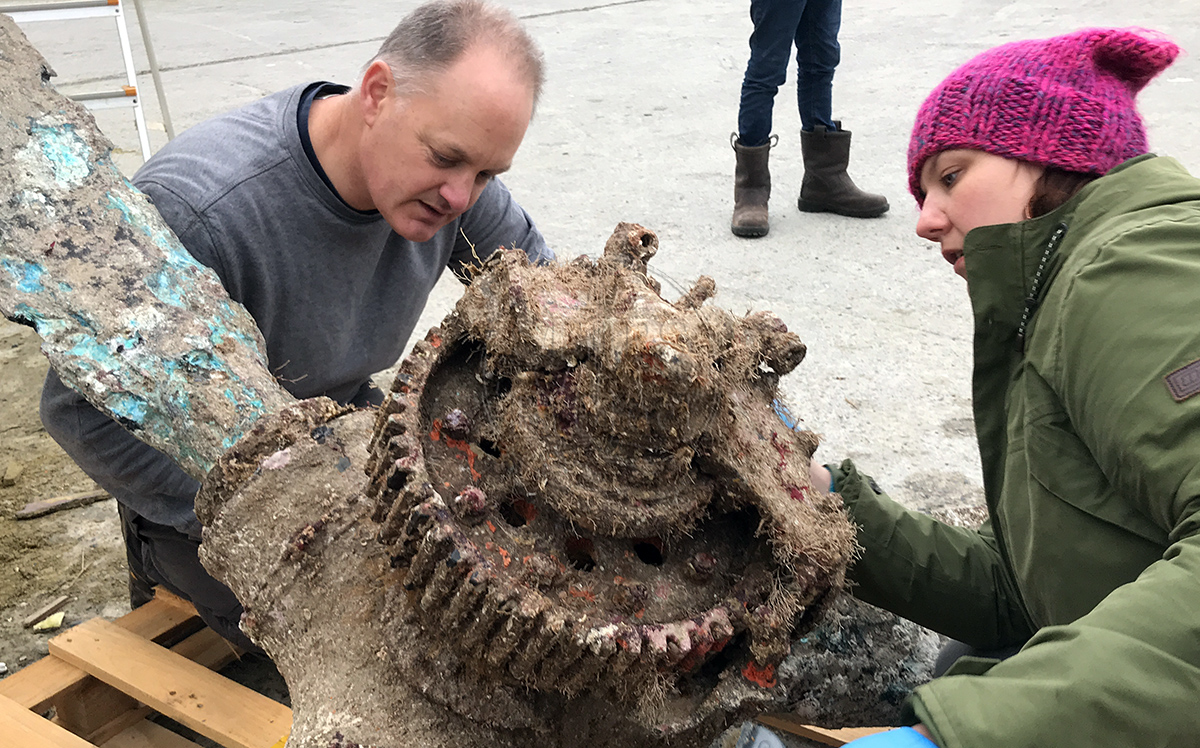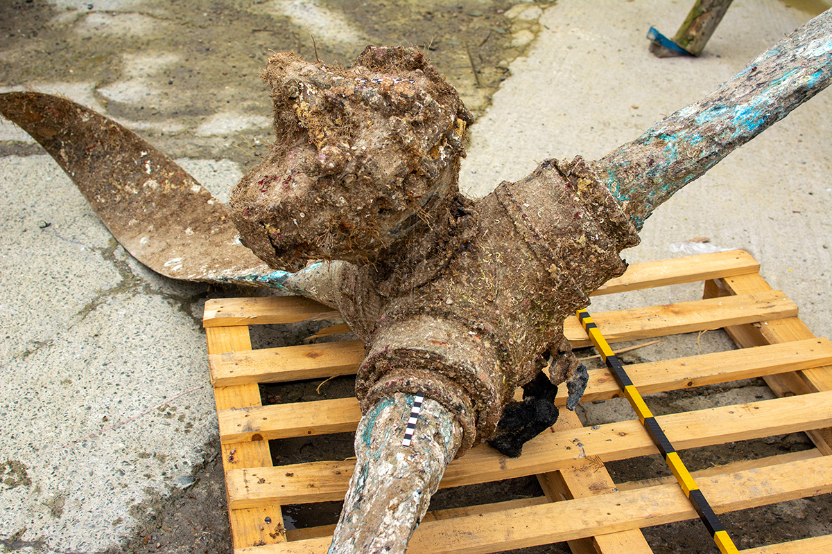 The propeller was taken to Yacht Havens in Oreston while a long-term home for it could be found. Mount Edgcumbe House Museum offered to take the propeller and start the conservation process. The propeller had been submerged in seawater for many years so this had to be removed or the propeller would corrode away quite quickly.