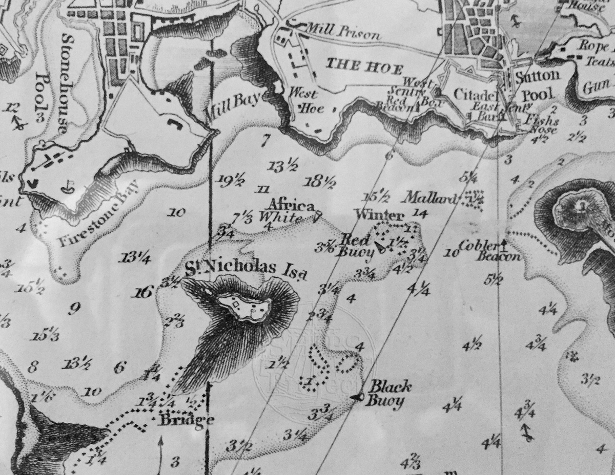 The names of places in Plymouth Sound have changed many times over the years. For example, Drake’s Island is shown on charts to be St. Nicholas’ Island up until 1782 and the stretch of water known today as the Cattewater was only given that name in the late 1800s, before that it was known as the Catwater.