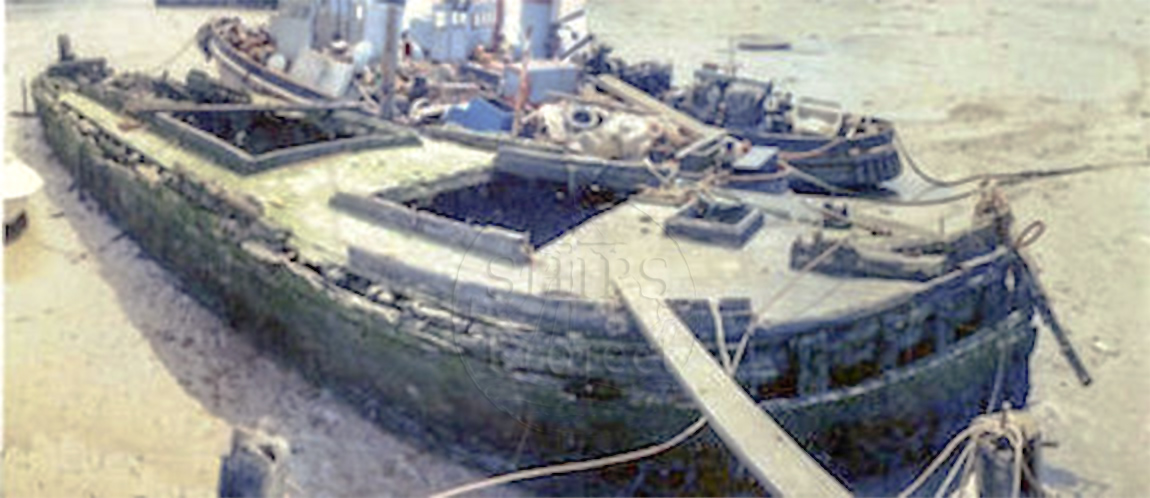 . At this point she seems to have been abandoned and by 1980 when John Cotton saw her (Photo 6, 7) she was no longer afloat and was sat on the mud, joined by the two Harbour Launches