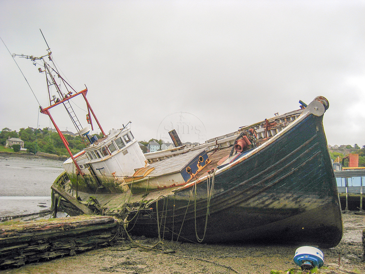 Bon Ami was beached in Hooe lake between 2010 and 2012 and by 2012 she had been bilged with planks removed from her hull on the starboard side.