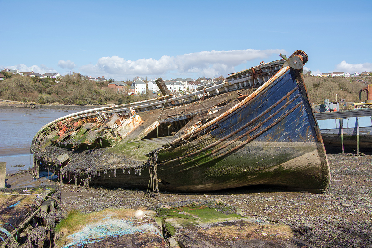 Remains of a fishing vessel on the southern shore of Hooe Lake, near Oreston in Plymouth.