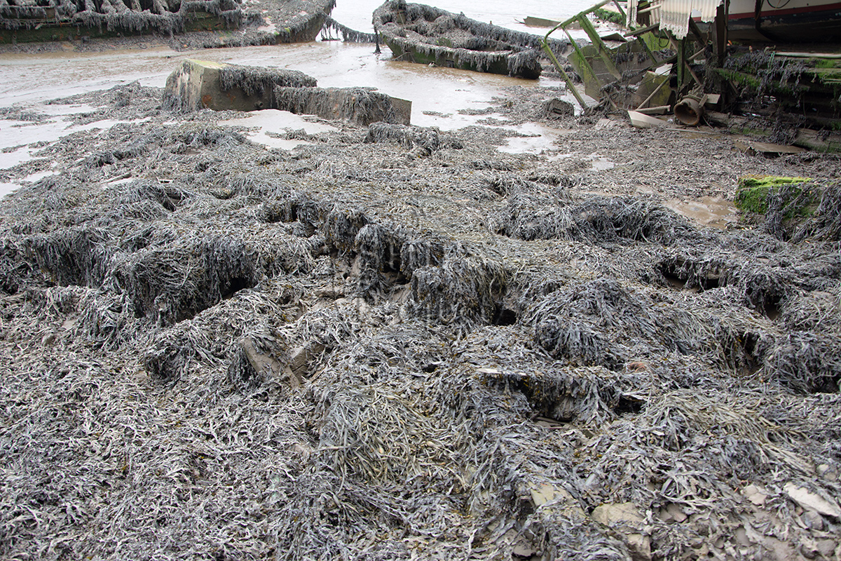 Remains of a fishing vessel at Budeaux Wharf on the east bank of the River Tamar.
