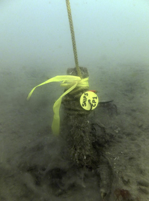 The Cattewater wreck site is on the south side of the main shipping channel of the river Plym, just of Mount Batten Watersports Centre and within the boat moorings. As what remains of the timber hull is buried beneath a metre or more of sediment there is little to see on the site. The only feature marking the location of the site is the stub of a steel scaffold pole showing above the seabed, part of the excavation frame left in place after the last excavation.