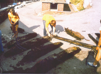 In April of 1976 Bax was joined by Professor Robert Farrell and an intensive survey began. The work continued in an area of interest that divers had noticed towards the end of the 1975 season but this turned out to be nearly 40 metres from actual site. When the divers returned to searching around the mooring called ‘Spitfire’ and soon located surface timbers, after some hand fanning and ‘gentle air blast operations’ more timber was revealed (3).
