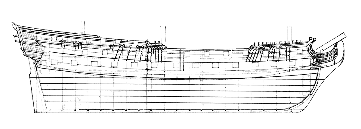 LD 26 x 32pdr, UD 28 x 18pdr, QD 12 x 9pdr, Fc 2 x 9 pdr