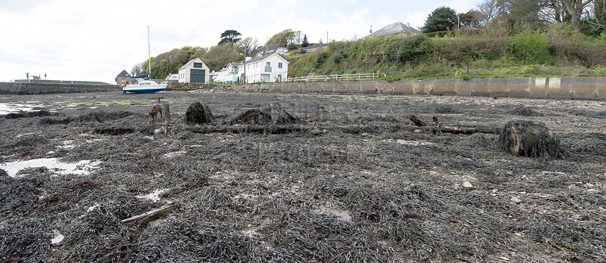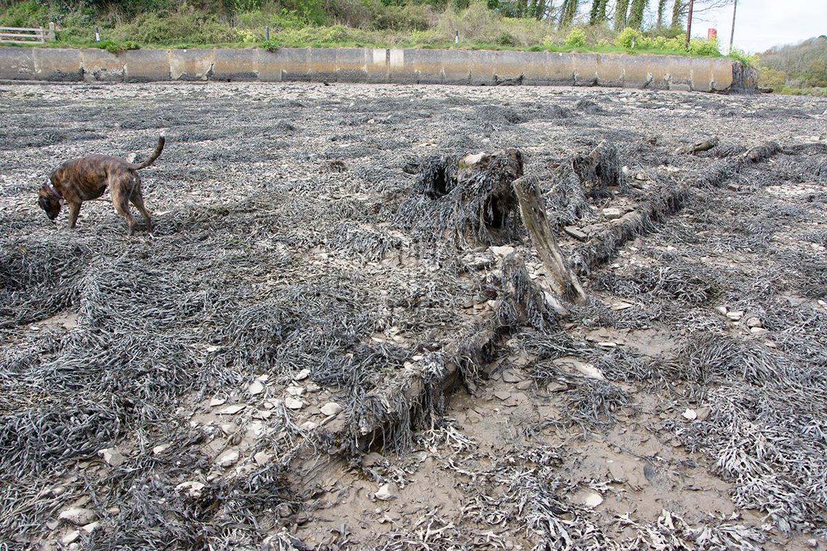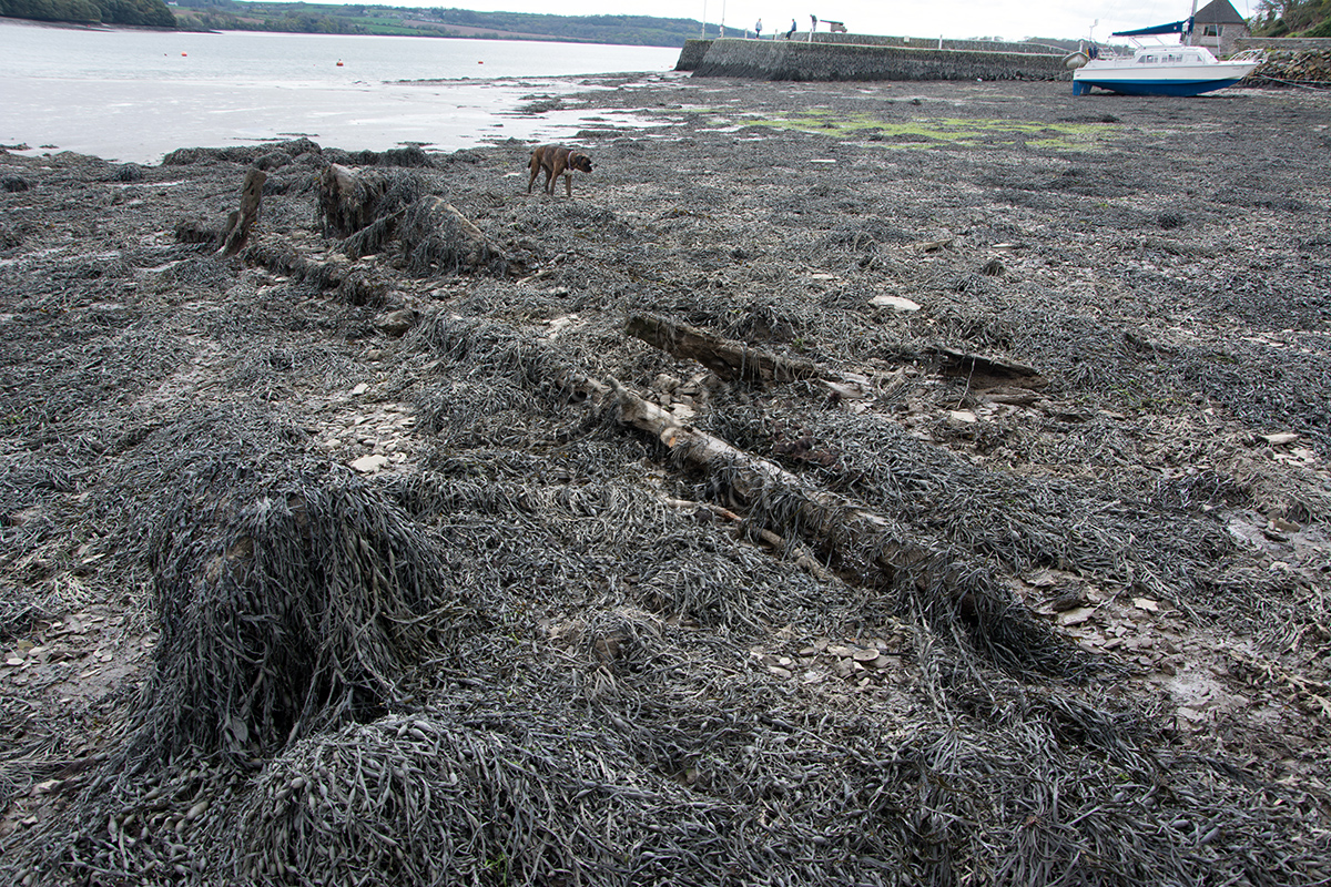 The heavily eroded remains of a keel and some timber frames with iron fastenings can be seen on the foreshore, hidden by weed (Figs 2 - 4).