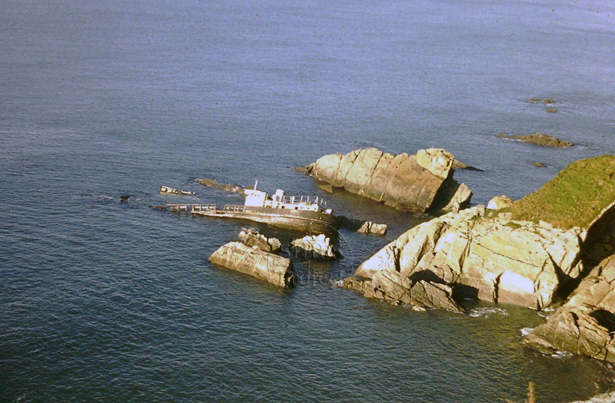 On Saturday November 8th the newly fitted out Emma Christ set sail from Plymouth to conduct sea trials in Whitsand Bay with Burland and three crew aboard. After an hour or so the engine stopped due to a fuel blockage so the ship rode at anchor for three hours whilst the crew tried to fix the problem. The wind had picked up which made the boat strain on the anchor cable, with a loud bang the cable parted and the ship started heading for the shore. The stiff onshore wind drove the helpless boat into shallow water and towards the rocks and surf. The crew couldn’t start the engine because the air bottles needed to turn it over were empty and the air compressor used to fill them had seized up after only a few minutes. In desperation, two more anchors were thrown over the side but it was too late and shortly afterwards the Emma Christ was swept onto the rocks. Burland sent up flares signalling distress which caused the lifeboat and helicopter to be scrambled. By the time the helicopter arrived the ship had been pushed under the cliffs, her stern ashore and hull wedged between rocks, and she was being buffeted quite strongly by the waves. Two crewmen had scrambled off the ship on to the rocks, but the Lifeboat could not approach near enough to rescue the other two crew, so the helicopter, hovered very close to the cliffs and winched the other two crew off the boat to safety.
