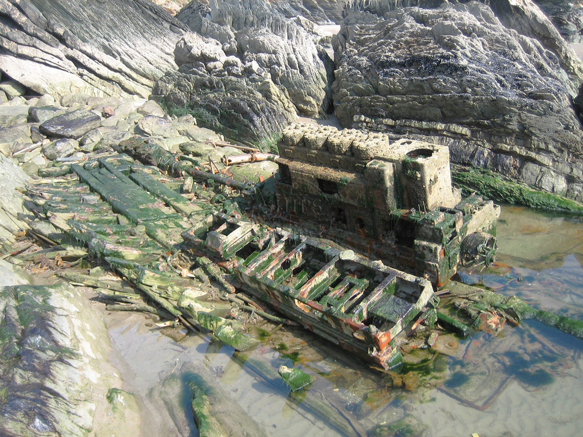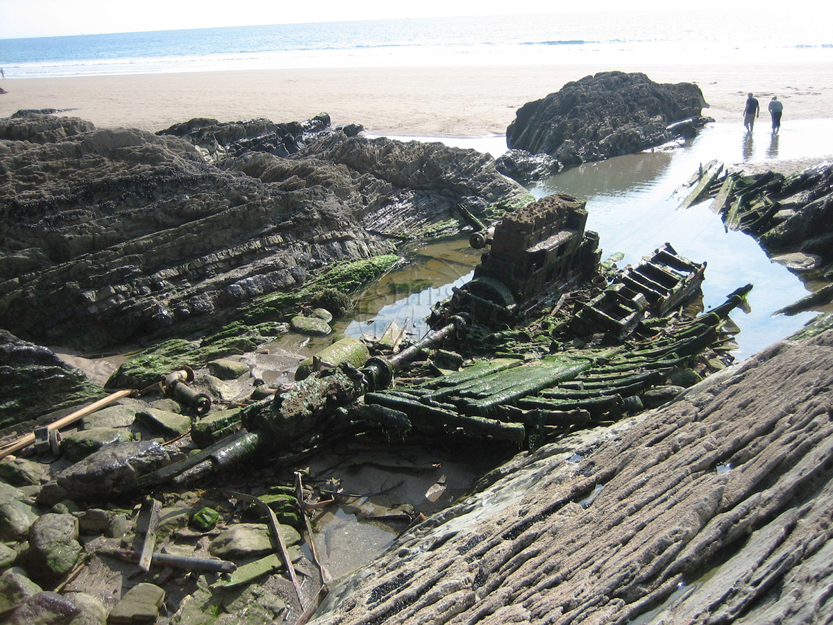 The most notable feature of the wreck is the large diesel engine block which is usually visible in a sand-filled gully where the ship lies. Occasionally all the sand disappears and the remains of the timber hull can be seen along with the propeller shaft, compressed air tank and other rusted machinery, as seen by Giles Richardson in 2007.