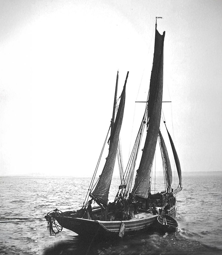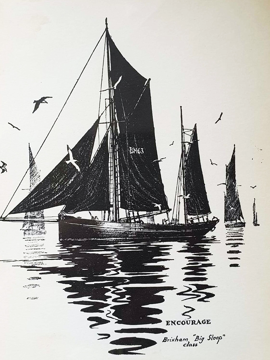 The 40-ton big sloop ketch Encourage was built by the famous boatbuilder R. Jackman & Sons in 1926. Encourage was the last trawler to be built at Jackman’s Yard, but Jackmans carried on repairing both sail and steam ships until the mid-1930’s when the business closed. Encourage was registered on 3rd June 1926 in Brixham as BM63, her first owner was Harry Leonard Lang of 53 North View Road in Brixham. Encourage was sold to Robert Leach of Brighton on 2nd November 1937 then to an unknown buyer in Shoreham on 22nd March 1938. Between 26th May and 4th June 1940, she was at Dunkirk as one of the Little Ships used to rescue British troops escaping from the German invasion of France in WWII.