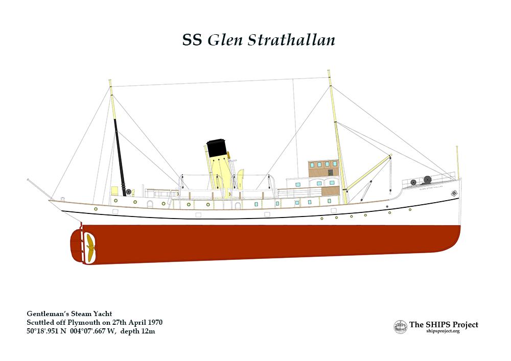 The trustees originally intended to sink the vessel in the Hurd Deep, a 100m deep stretch of water off Alderney in the English Channel, but an appeal from Alan Bax at the School for Nautical Archaeology Plymouth (SNAP) changed the plan, and the Glen was to be scuttled in Plymouth Sound. She was towed from the Thames on 20th April 1970, arriving at Plymouth on the 27th. After some discussion with the Plymouth Harbour Master about where the ship was to be sunk, the seacocks were opened, and she sank to the bottom.