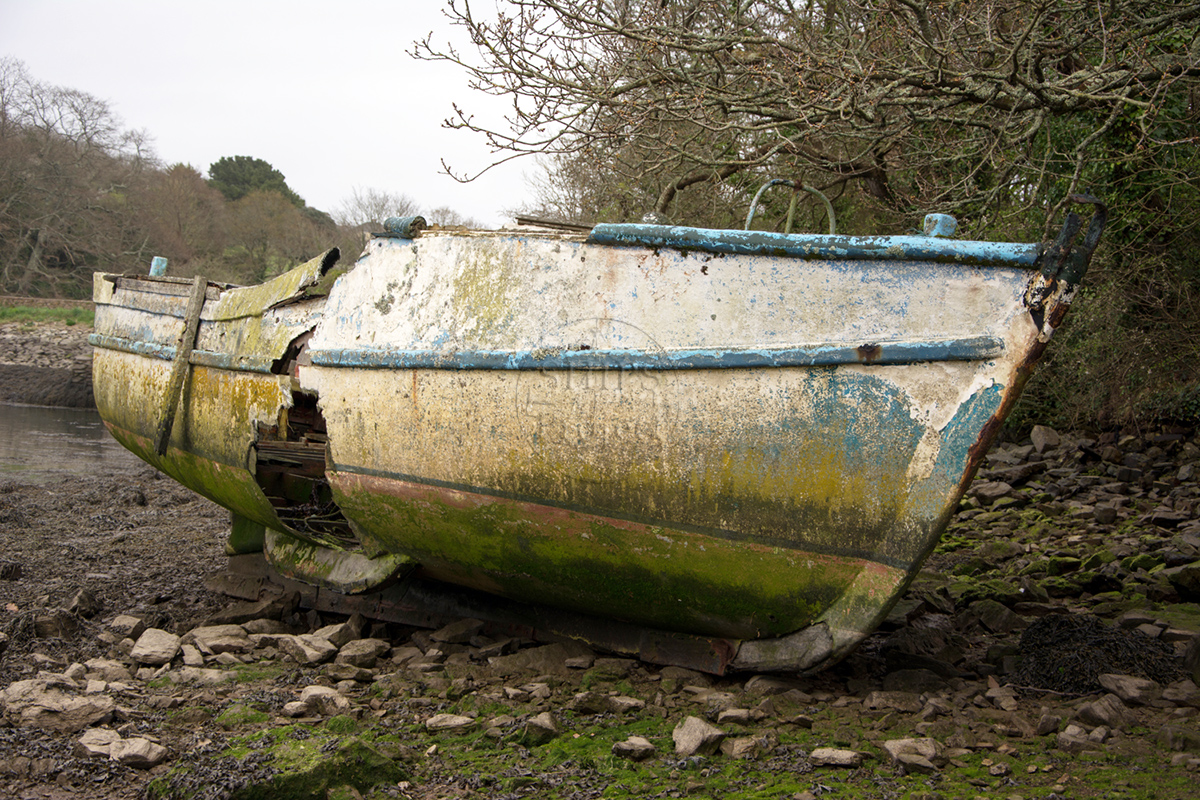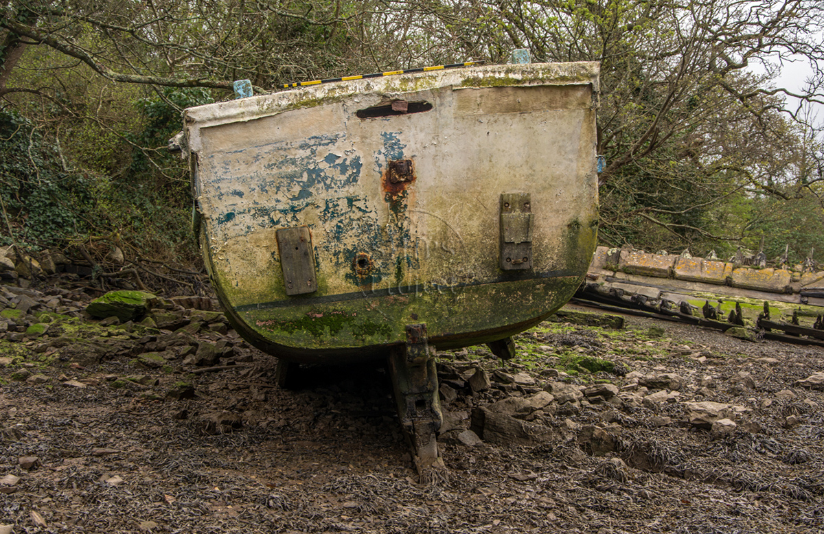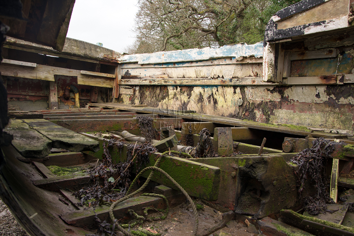 This unknown wood and fibreglass motor cruiser was abandoned on the shore of Hooe Lake around 2010, lying close to the remains of the houseboat Roger