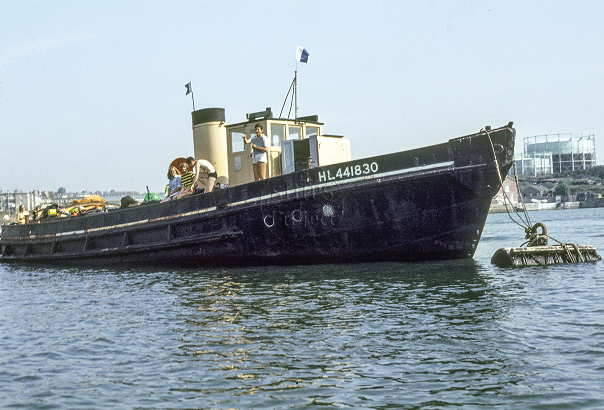 Four Admiralty 60ft harbour launches were bought by the diver training company POP Fort Bovisand around 1977. Three of the vessels are named HL441827, HL441828 and HL441830, one was the D22 or Canute and operated out of HMS Vernon. The only one we have information for is HL441827, she was ordered in 1944, completed in 1947, sent to Chatham Naval Dockyard for use in 'basin duties', transferred to Deptford in 1958 and had her engine replaced. In 1961 she was sent to Devonport Naval Dockyard and was sold out of service in December 1977.