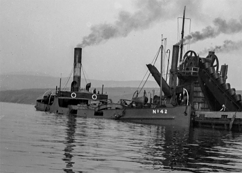 On Friday, 12th September 1913, the 150-ton self-propelled Hopper Barge No. 42 was making her way from Cadiz in Spain to Southampton via Corunna at the end of a dredging contract. The barge was to stop in Plymouth to take on coal for her bunkers. She arrived after dark on a fine but cloudy night at the entrance to Plymouth Sound and signalled with flares for a pilot. At that time, the pilot, Thomas Staddon, was busy aiding the huge White Star liner Oceanic to leave the Sound. There was no answer from the pilots, so the impatient Captain James H. Burns then decided to enter the Sound by himself, ordering full speed ahead. Unfortunately, the Captain had shaped a course on the wrong side of the Breakwater lighthouse. The lookouts shouted that they could see the Breakwater ahead, the Captain ordered full speed astern, but it was too late and the barge drove up onto the Breakwater just before midnight. The barge drove hard onto the rocks a little to the west of the Breakwater Fort and tore a hole in her forefoot. The crew lit flares and sounded the steam whistle to attract attention, but before help could arrive, the rising tide allowed the ship to fall broadside onto the Breakwater. The action of the waves made the ship bump heavily, and soon the hull was punctured by several holes.