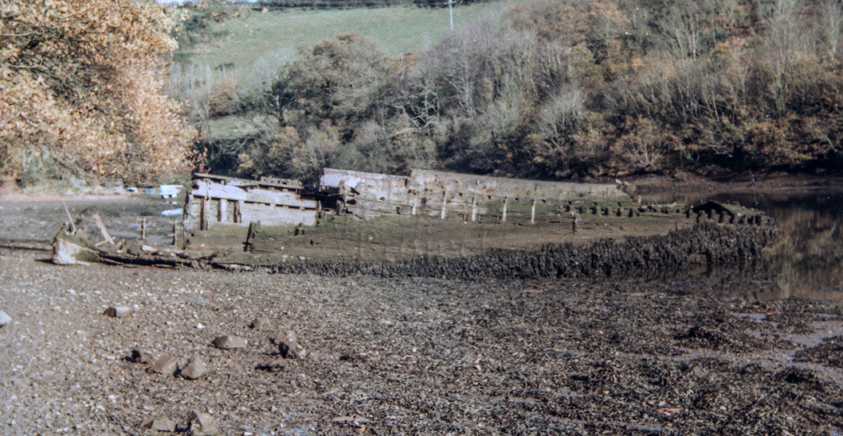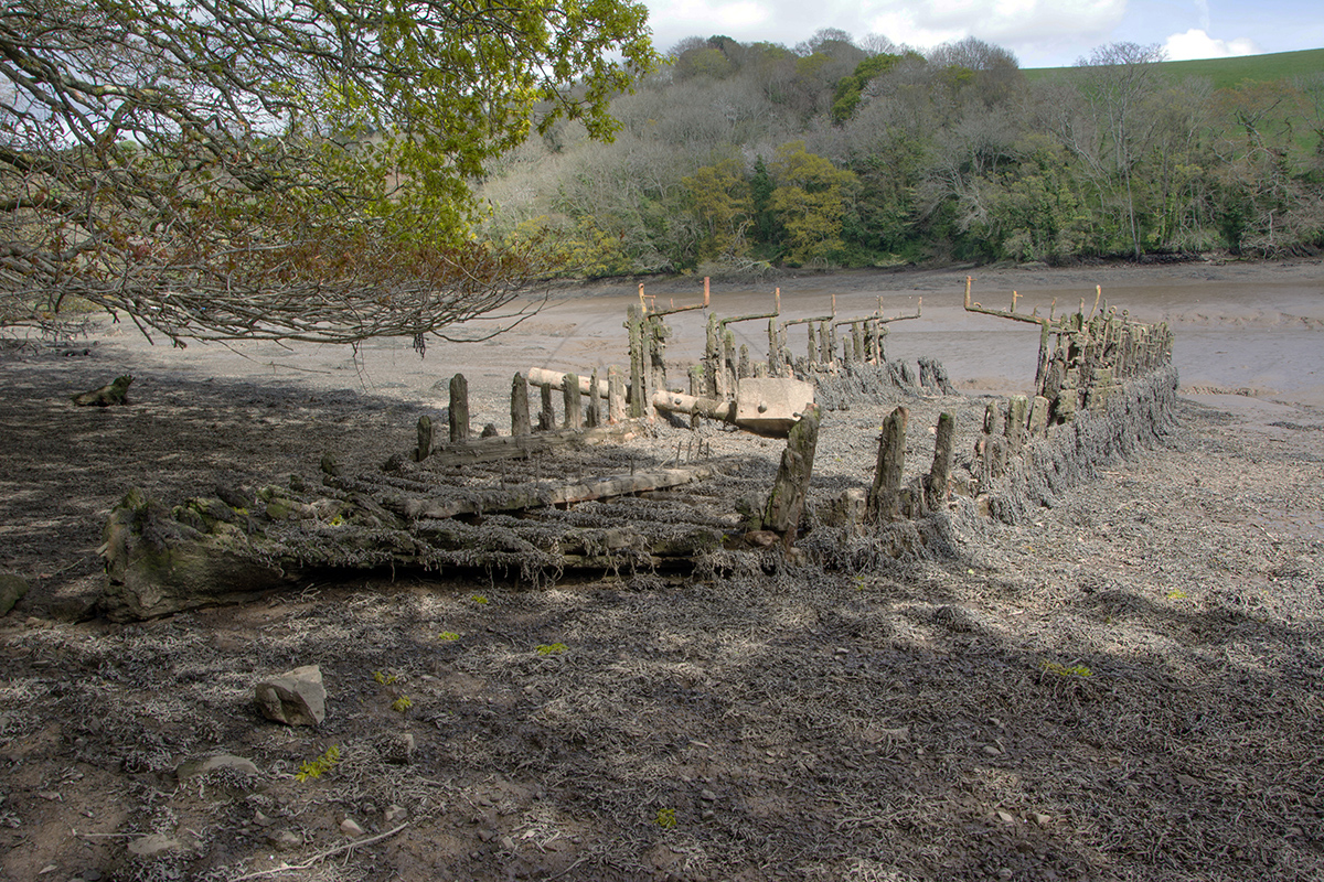 An unknown vessel lies on the western bank of Forder Lake at Shillingham Quay.