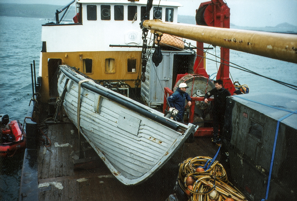 The seabed to the north of the Breakwater Fort was already in use by Plymouth Ocean Projects for commercial diver training and already had a collection of structures on the seabed, so it was an ideal location to add one more. The Fort site was sheltered from waves by the Plymouth breakwater, it was easily accessible by divers, it was shallow, and the Fort could be used as a dry and stable base for setting up any electronic equipment needed for the survey work. The original idea was to use the bow section of a decommissioned trawler called Atlantis, but this was very tall and needed a lot of work to make it safe for divers to record. Instead, the team were offered the ex-Trinity House tender Tavy, a clinker-built wooden vessel launched in 1959, and at 7.6m long and with a beam of 1.54m, she was a much more suitable size. Skipper Dave Boon had bought Tavy from Trinity House, and she was later sold to the oil company Conoco as a tender to a fuel barge, but she ended up in the boatyard at J. Boston & Son, and Tavy was donated to the project by Nigel Boston.