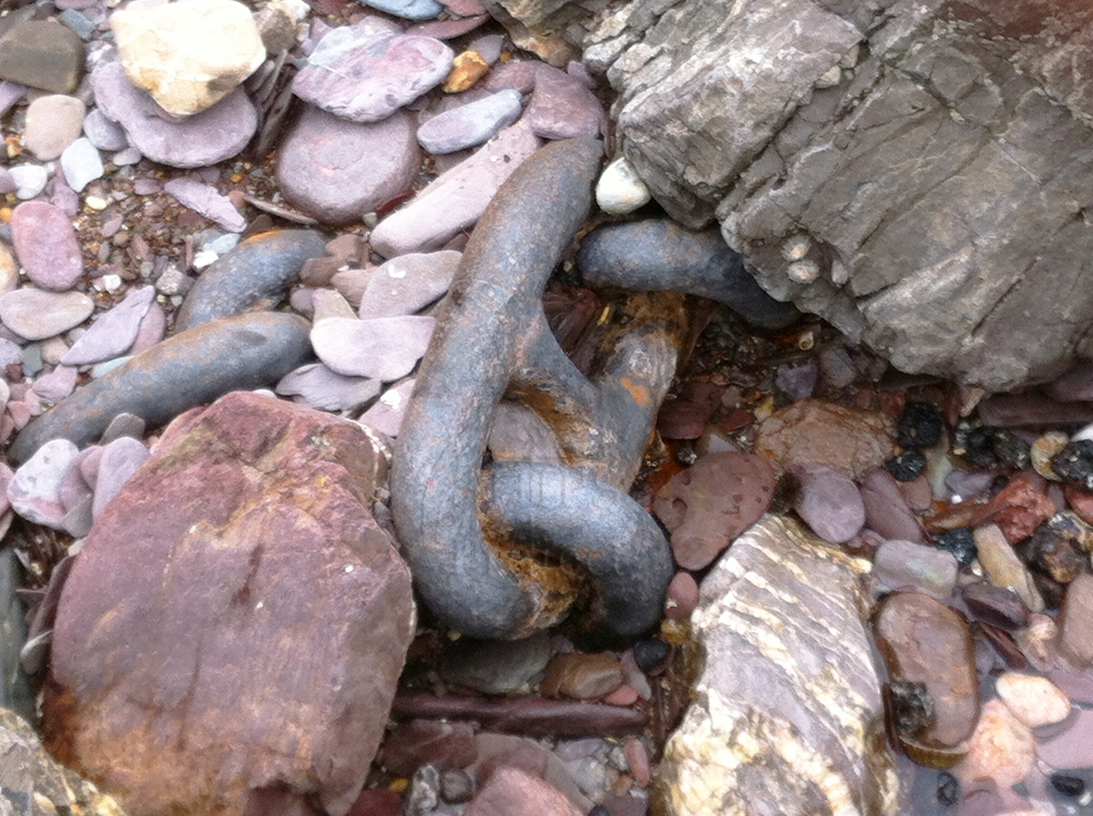 From Plymstock, take Bovisand Road through Staddiscombe, turn right into Renny Road then right again into Bovisand Lane following the road to Bovisand Park (PL9 0AT). Take a parking ticket if required then drive to the end of the road and park on the grassy area by the sea. Follow the footpath south for 300m, climb down to the rocks and look for iron debris.