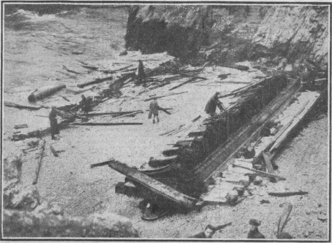 The crew all gathered together on the poop deck, apart from the wireless operator, who sent out repeated distress calls until the sea smashed his radio. Distress rockets were fired and flares burnt in the hope of attracting attention. The stern of the ship started to collapse, so the crew moved to the forecastle where they stayed huddled together for four hours, cold, wet and expecting to be washed away at any moment.