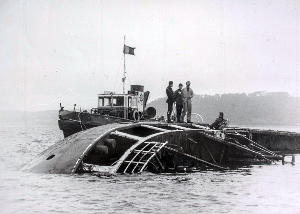 The cargo ship Fylrix rolled over and sank in Jennycliff Bay in 1984 after her hold flooded in rough seas.